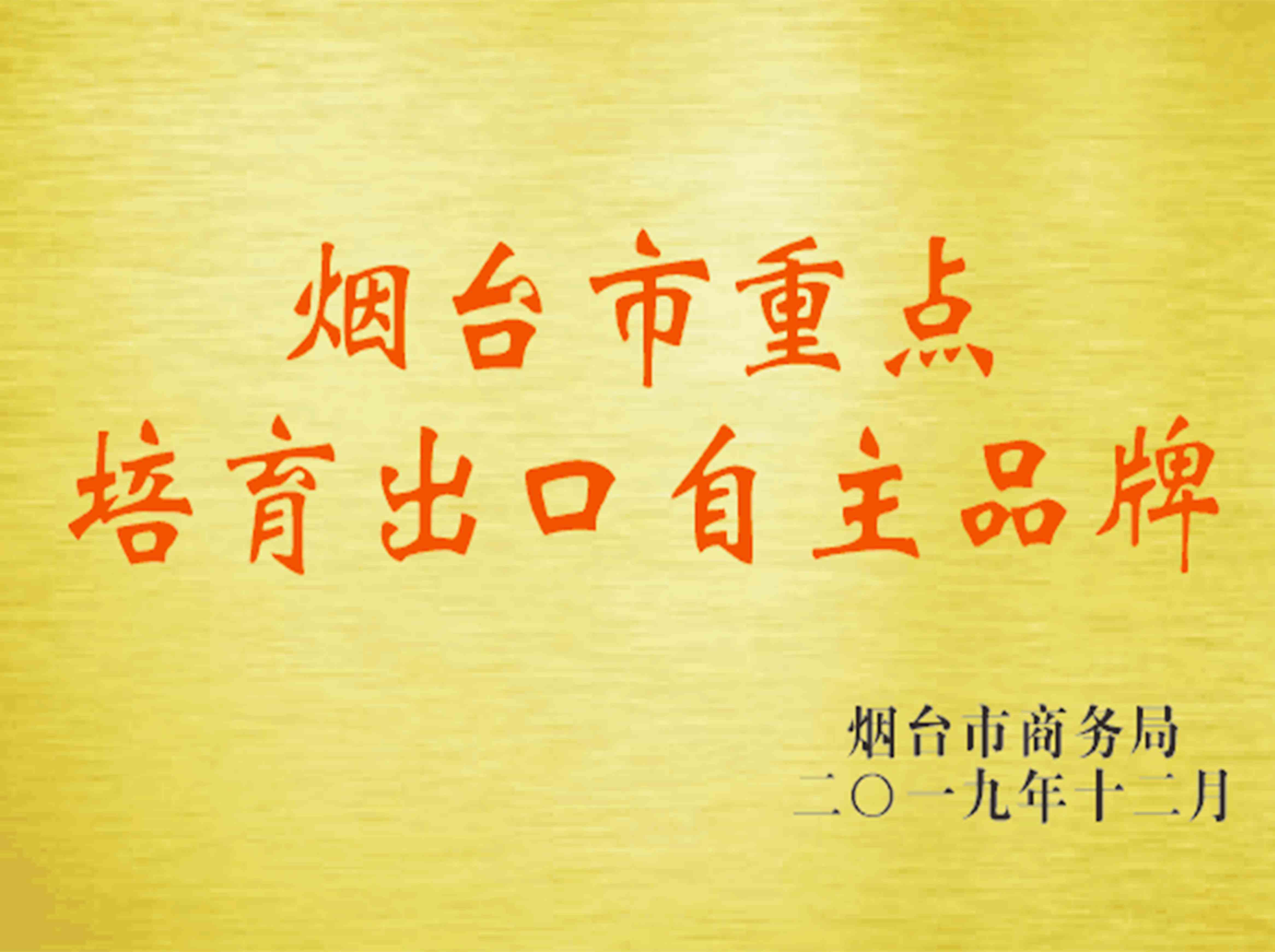 2019年煙臺市重點培育出口單位。