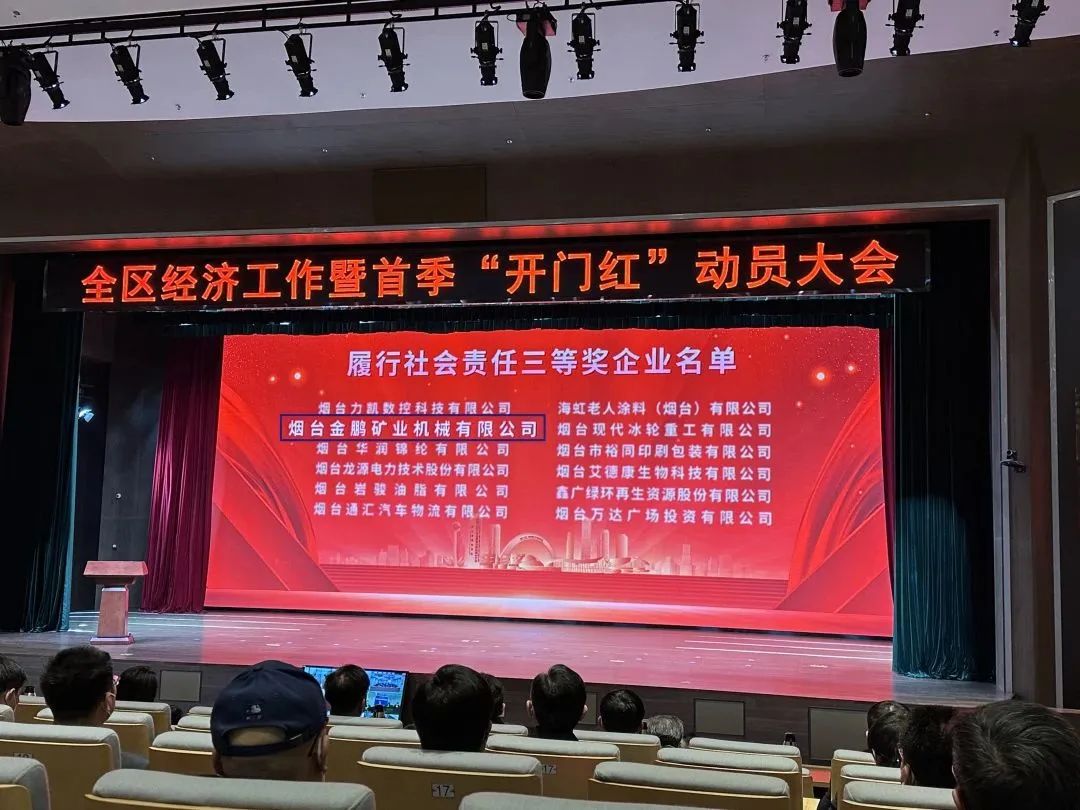 1月29日上午,煙臺黃渤海新區(qū)全區(qū)經濟工作暨首季“開門紅”動員大會在美麗的八角灣會展中心隆重舉行。會上,金鵬礦機被評為“履行社會責任三等獎企業(yè)”,許慶硯總經理獲頒“2022年度履行社會責任優(yōu)秀企業(yè)家”榮譽稱號。